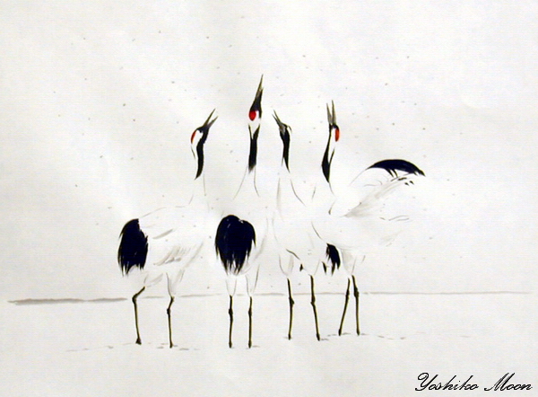 The Fine Japanese Ink Paintings on these pages are the original work of Yoshiko Moon... and are hand painted onto delicate and fragile, hand made washi paper, hand made cold press papers and other high quality mediums.